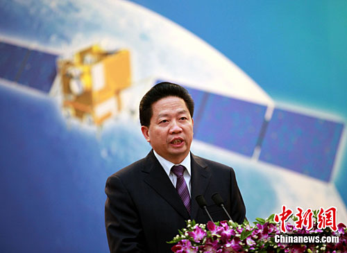 中国工业和信息化部副部长兼国家国防科技工业局局长、探月工程重大专项领导小组组长陈求发出席基金成立捐资仪式并讲话。中新社记者 孙自法 摄