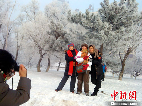 12月21日,吉林市松花江沿岸出现了今冬首场雾凇奇观。松花江边垂柳松枝皆被晶莹的雾凇裹住,绵延几十公里银装素裹。如此难得美景吸引大批市民冒着严寒到户外拍照。
