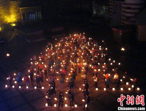 此外,由500多名游客高举火把,摆出的巨型“人体圣诞树”也亮相此间,引得围观市民大呼惊奇。据悉,12月24日平安夜,该园还将组织2010名游客排列出超大、超震撼的圣诞树造型。 中新网发 肖前辉 摄