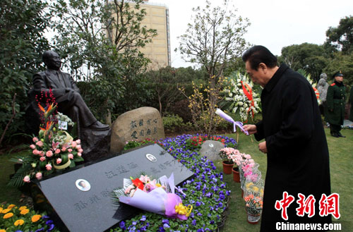 12月24日,中共中央台办和海协会在上海为汪道涵逝世五周年举行简短而庄重的祭奠活动。海协会会长陈云林在上海福寿园汪道涵纪念像前献花。