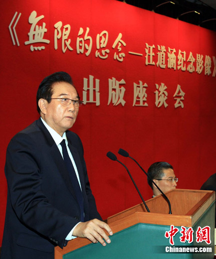 12月24日,由江泽民同志亲笔题写书名、曾庆红同志作序的《无限的思念——汪道涵纪念影像》出版座谈会在上海举行。图为海峡两岸关系协会会长陈云林在座谈会上致辞。中新社记者 潘索菲 摄