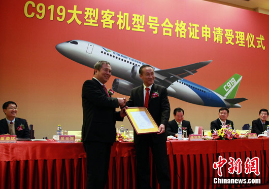 12月24日下午,中国民用航空局在北京正式受理中国商用飞机有限责任公司C919大型客机型号合格证申请,此举意味着备受瞩目的中国C919大型客机研制将严格按照适航标准全面展开。