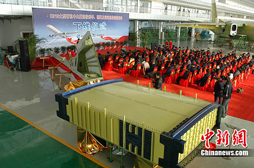12月28日,由中航工业西飞国际研制生产的C919大型客机中央翼、襟翼及运动机构部段样件正式下线,标志着中国自主研发的C919大型客机复材部段研制取得重要进展。中新社发 冯新胜 摄