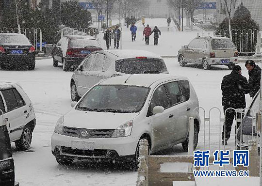 12月29日,在北京海淀区西山脚下,人们行走在积雪的道路上。当日,北京部分地区迎来今冬首场降雪。李明放 摄 图片来源:新华网