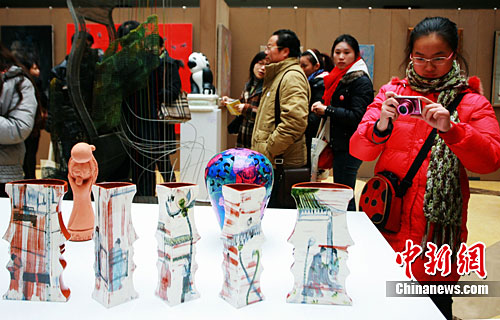 图为一位参观者正在拍照留念。中新社发 刘忠俊 摄