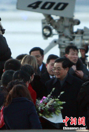 中国国家主席胡锦涛结束了在美国首都华盛顿的访问活动后,20日下午从华盛顿乘专机抵达芝加哥,继续他对美国为期四天的国事访问。中新社记者 魏晞 摄