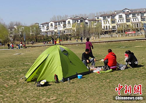 图:郑州人爱上郊外支帐篷晒太阳(2)
