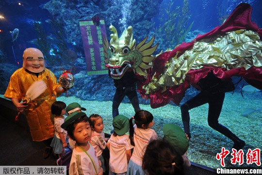 参与互动(0) 1月17日,泰国曼谷。孩子们在暹罗海洋世界观看潜水员表演的水下舞龙。水下舞龙是中国龙年庆祝活动之一。