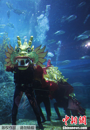 泰国曼谷水下舞龙迎接中国龙年(2)