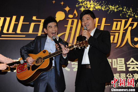 图为王洁实与叶佳修(左)深情合唱《外婆的澎湖湾》。中新社发 李学仕 摄