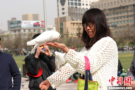 甘肃市民未受H7N9影响淡定与鸽子“亲密接触”(2)