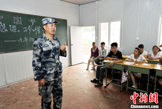 5月14日,在四川芦山地震震中龙门乡的晨阳希望学校九年级二班的板房教室里,举办了一次特殊的班会。安源 摄