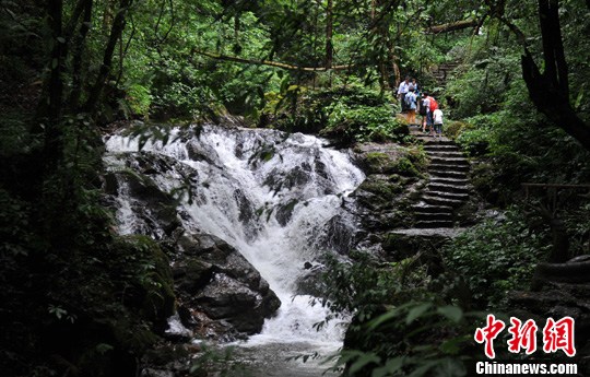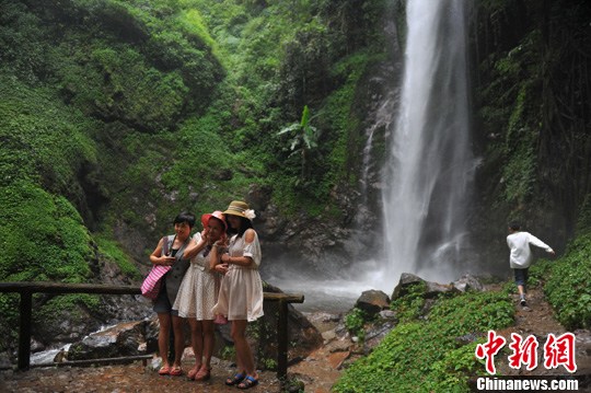 10月4日,云南瑞丽市莫里瀑布热带雨林景区吸引游人游览。中新社发 任东 摄