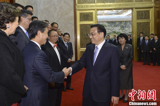 11月1日,中国国务院总理李克强在北京人民大会堂会见美国知名华人组织百人会访华团代表,并同他们进行了座谈交流。中新社发 廖攀 摄