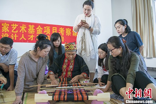 12月20日,中国国家艺术基金全国黎锦设计人才培养项目正在海南师范大学进行。来自全国的20名学员中有90%具有硕士以上学历,他们跟随海南省黎族传统纺染织绣项目国家级传承人容亚美等民间艺人学习黎族传统纺染织绣技艺。