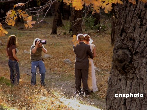 美国加州今年呈现暖冬景象,拍摄婚纱的年青有情人,享受着十二月的明媚阳光。中新社发 贾国荣 摄