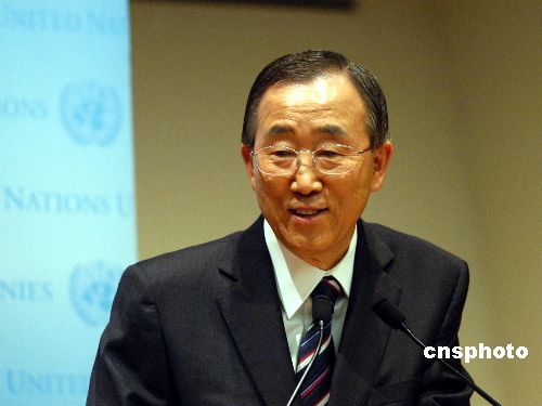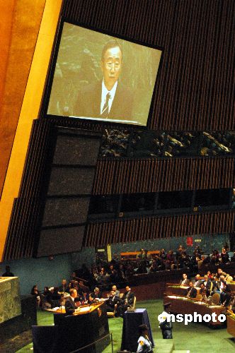 联合国第八任秘书长潘基文十四日在纽约联合国总部宣誓就职,六十二岁的潘基文将于二00七年一月一日开始为期五年的任期。他在宣誓仪式后的致辞中表示要努力增强国际社会对联合国的信任。中新社发 谭宏伟 摄