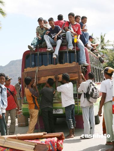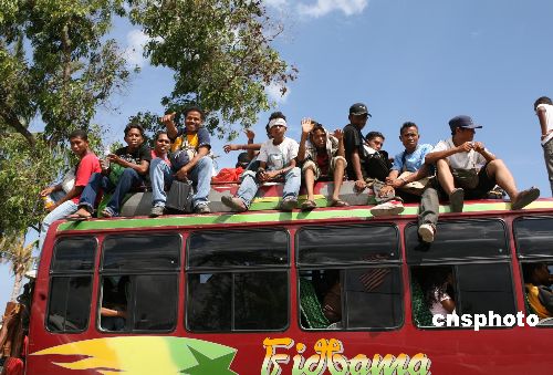 在各地欢度圣诞节之际,东南亚小国东帝汶帝力市的超市门口也一片繁忙, 许多农民购买了圣诞节的物品后,挤在一辆汽车上赶回家,致使汽车外挂满搭车人, 危险随时可能出现。这个世界上最贫穷之一的国家, 急需政治安定, 发展生产, 提高市民的生活保障。中新社发 王丽南 摄