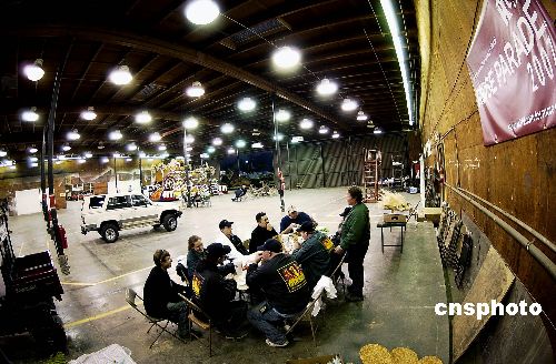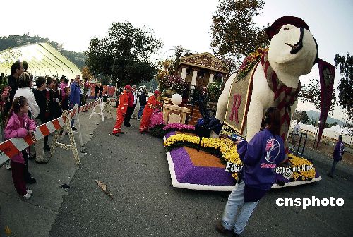 洛杉矶新年玫瑰花车大游行即将于当地时间一月一日上午八时举行。忙碌多日的花匠们在新年前夜稍作休息,准备以饱满的热情和体力投入这一举世闻名的节日大游行。而蜂拥而至的民众已经按捺不住好奇,提前饱览停放在玫瑰碗球场的花车,并拍照留念。中新社发 陈钢 摄