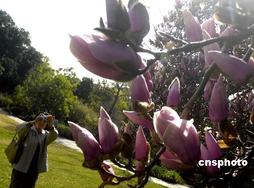 美国洛杉矶遇到暖冬气候,二月初玉兰花早早盛开,又快速凋谢。中新社发 贾国荣 摄