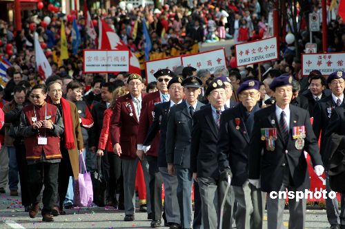 当地时间2月18日,加拿大温哥华侨界为迎接中国“金猪”年的到来,正午时分在华埠举行一年一度的春节大游行,近十万人汇聚唐人街观看盛况。中新社发 罗琦 摄