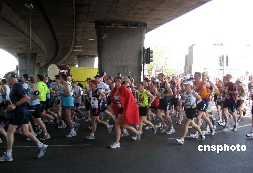 当地时间4月22日,英国迎来一年一度的伦敦马拉松比赛。当地市民热情参与,街头还有乐队助兴。中新社发 樊桦 摄