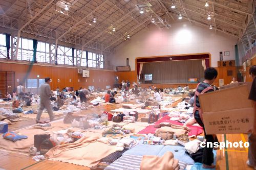 七月十六日发生的日本新潟地区强烈地震造成九人死亡,千数人受伤,上万民众离家避难。中新社发 朱沿华 摄