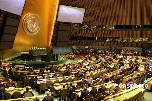 联合国气候变化问题高级别会议当地时间九月二十四日在纽约联合国总部召开,此次会议旨在推动国际社会尽快就气候变化的相关议题达成协议。约八十个国家的元首和政府首脑与会。中新社发 李静 摄