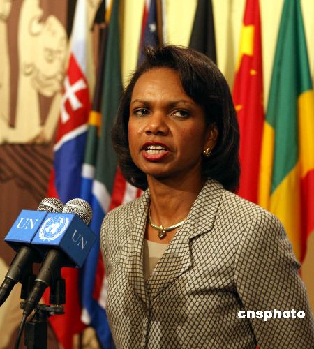 美国、俄罗斯、中国、法国、英国和德国六国外长当地时间九月二十八日上午在纽约就伊朗核问题举行磋商。各方同意两个月后再就此问题进行讨论。赖斯会有对记者称,对伊核问题,美国将继续推动磋商解决,但同时也在推动安理会对伊实行新制裁。中新社发 李静 摄