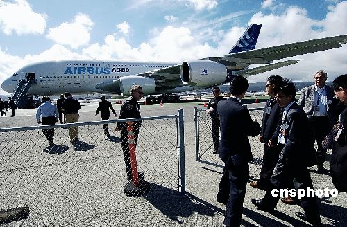 当地时间十月四日,一架空中客车A380双通道宽体客机着陆旧金山国际机场。此次航行是实地检验旧金山国际机场的接待能力以及继续完成美国联邦管理局规定的一百五十小时的“性能和可靠性的”数据采集工作。旧金山国际机场是全美第一个达到接待A380标准的机场,本款A380可承载五百二十位旅客。中新社发 陈钢 摄