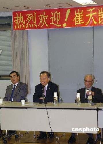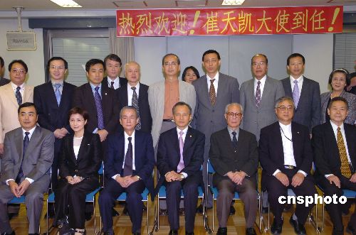 10月9日下午,中国新任驻日大使崔天凯来到东京华侨会馆,看望东京、横滨两地的华侨华人代表并与他们座谈。据了解,同日下午,崔天凯大使刚刚向日本外务省递交了国书副本,此次与在日侨胞的座谈是崔天凯作为中国驻日大使参加的第一场活动。中新社发 滕剑峰 摄