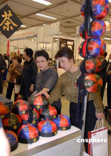 10月11日上午,“2007浙江省中华老字号日本展”在东京池袋太阳城会所展览馆开幕。来自浙江的48家“中华老字号”齐聚扶桑,设有106个展位,分为丝绸织锦、工艺美术、中医药保健、食品酒类、茶品茶艺、商业服务等类别,现场展示的商品种类达3000多个。中新社发 段跃中 摄