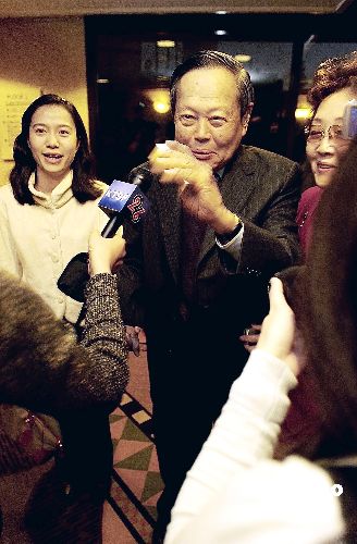 当地时间十月十四日,清华北美教育基金会年会暨硅谷清华论坛在硅谷重镇圣荷西举行。这也是中国大陆与台湾的清华大学以及两所大学在硅谷的四个校友会组织首次联袂举行年会,清华校友杨振宁谐夫人出席并发表主题演讲。图为出席会议的杨振宁和夫人被记者包围。中新社发 陈钢 摄