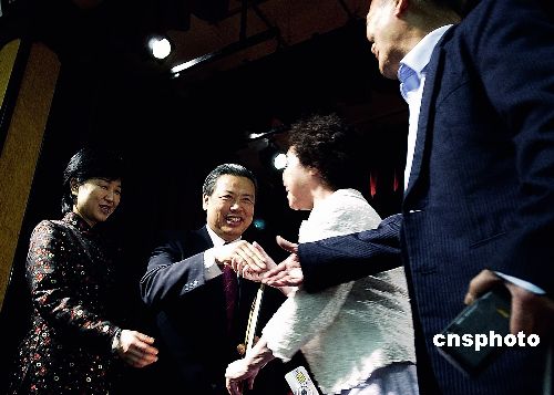 当地时间十月二十三日晚,中国驻旧金山总领事彭克玉在总领馆举行离任招待会,向当地华人华侨告别。中新社发 陈钢 摄