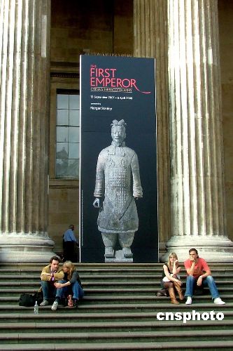 从即日起至2008年4月6日止,伦敦大英帝国博物馆内展出从西安新出土的兵马俑歌妓、红马等上百件文物。英国华人厨师还在展馆现场示范中国点心蒸肉包子,伦敦刮起“中国热”。中新社发 卢威 摄