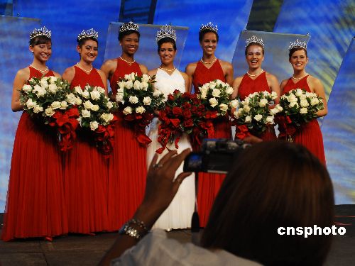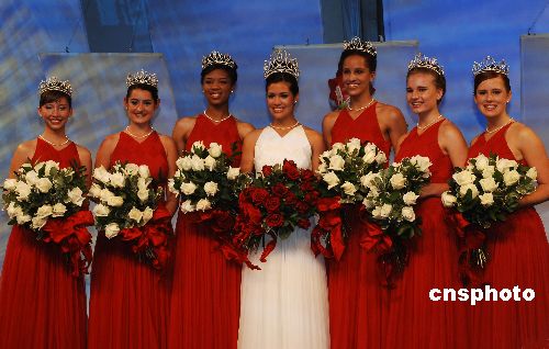 美国第九十届玫瑰皇后和公主的加冕仪式,十月二十五日在巴沙迪那玫瑰宫举行。高中十七岁少女吉布斯喜戴由钻石珍珠装饰的价值十万美元皇冠,六名少女各头戴价值四万五千美元的公主冠。她们将在2008年元旦第一百一十九届玫瑰花车游行时,喜迎北京奥运花车。美国一百多年来的玫瑰公主选拔超脱于选美活动,在于注重少女的社区活动和学业成绩以及演讲能力,推崇标准的清纯“邻家女孩”。中新社发 贾国荣 摄