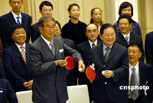 10月26日下午,东京都知事石原慎太郎在东京市政大厦会见正在日本访问的中国乒协主席徐寅生及其访日团一行20人。徐寅生一行应日本乒协的邀请10月25日抵达东京开始对日本进行一周访问,代表团成员包括庄则栋、曹燕华等10多名国手。石原慎太郎说,在日中邦交正常化35周年之际,在东京见到中国的著名乒乓选手非常荣幸。石原希望中国支持东京申办2016年夏季奥运会,通过体育交流促进中日关系。中新社发 段跃中 摄
