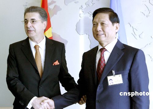中共中央政治局委员、北京市委书记、北京奥组委主席刘淇三十一日在纽约联合国会晤第六十二届联大主席克里姆。中新社发 李静 摄