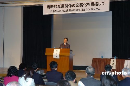 11月2日下午,日本华人教授协会在东京朝日礼堂举行创建四周年研讨会,中国驻日使馆崔天凯大使出席并发表基调演讲,来自日本政界、商界、学术界、中国驻日使馆以及当地媒体相关人士近400人参加。此次研讨会的主题为“进一步充实中日战略互惠关系”。与会专家从政治外交、经济金融、科学技术和文化教育领域就研讨会的主题进行了探讨。在基调演讲中,崔天凯大使就当前中日关系的发展提出几点意见。中新社发 滕剑峰 摄