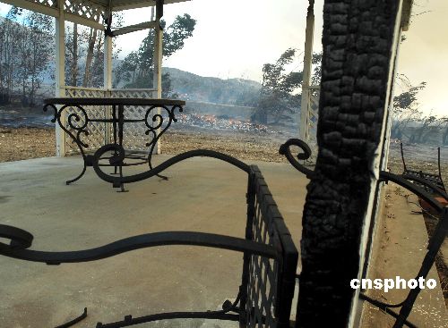 美国南加州大火十一月初还有一小部分被控制在圣地牙哥和橙县,灾区一片残败景象,而第二波热风本周末兴起,当局已提高警惕严防火灾死灰复燃。中新社发 贾国荣 摄