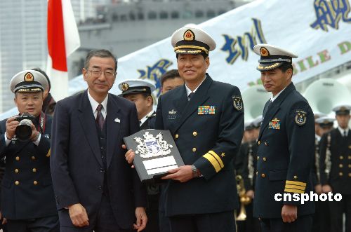 日方举行仪式欢迎中国“深圳”号导弹驱逐舰到访