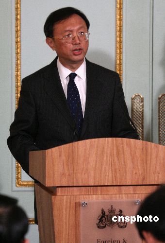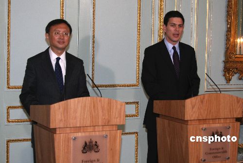 当地时间十二月五日下午,英国外交大臣米利班德在其伦敦官邸会晤来访的中国外长杨洁篪。这是杨洁篪就任外长后首次正式访问欧洲和英国。图为在双方会谈后共同会见记者时,杨洁篪回答提问。中新社发 李鹏 摄