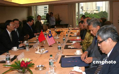 十二月八日傍晚,中国外长杨洁篪(左一)同马来西亚外长赛义德在吉隆坡东方文华酒店举行会谈,双方讨论了双边关系和共同关心的国际和地区问题,就两国今后合作达成多项共识。中新社发 苏祥新 摄