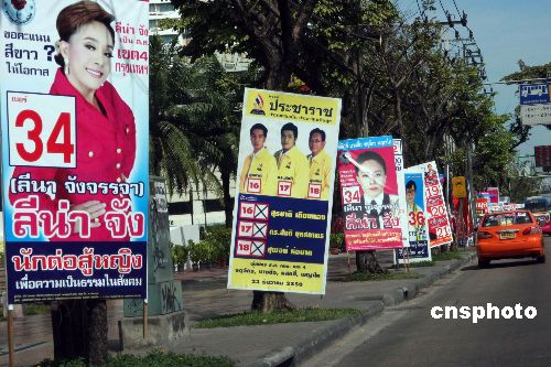 进入十二月的泰国,大选的气氛和天气一样炽热。大街小巷路边,琳琅满目的候选人的广告牌,与高音播放着竞选者政策的宣传车,成了泰国十二月街头一道独特的风景线。将于本月二十三日举行的泰国新一届国会下议院选举引人注目。目前各参选政党均在做最后的竞选冲刺。中新社发 顾时宏 摄