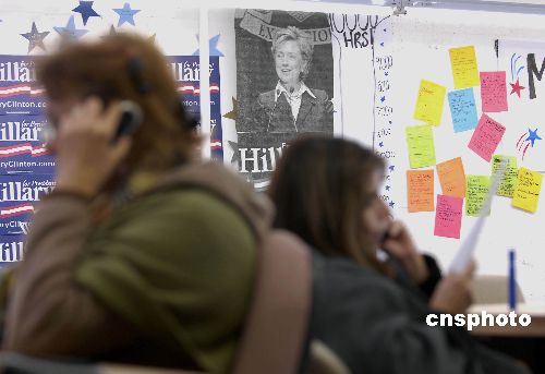 二零零七年的最后一个周末,美国,设于旧厂房中的希拉里旧金山竞选总部的义工们加班加点,给爱荷华州的选民打电话,号召民主党的选民们为希拉里投票。中新社发 陈钢 摄