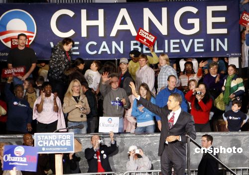 美国爱荷华州1月3日拉开2008年大选初选的序幕,人气正旺的民主党参选人奥巴马,2日在艾奥瓦州西达拉皮兹市争取选民支持。中新社发 李静 摄
