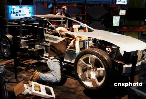 美国通用汽车一月六日在拉斯维加斯世界最大的消费电子产品展上,展示环保型无排放汽车模型。中新社发 贾国荣 摄