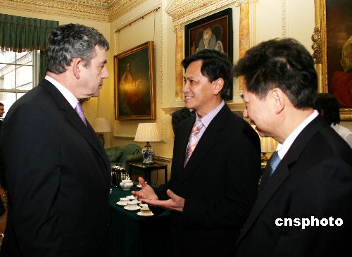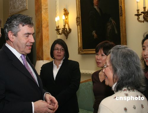 当地时间1月14日下午,即将访华的英国首相布朗在唐宁街十号会见旅英华人华侨、中资机构负责人、留学生等华人杰出代表。中新社发 李鹏 摄