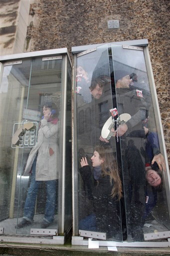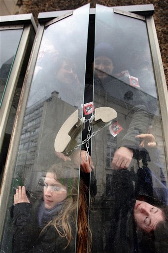 2008年1月15日,“Trop c'est trop”(“多太多”)组织的人士在巴黎一所监狱前示威,要求改善监狱人满为患的状况。他们挤在一个电话亭中,影射监狱中的拥挤状况。他们要求政府依法尊重囚犯被单独监禁的意愿。