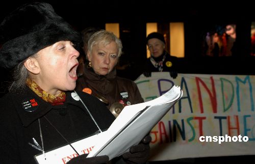 美国民间自发成立的祖母反战团于周三在纽约再次集会,提醒民众在总统初选之际伊战仍是困扰美国的首要问题。中新社发 邓悦 摄
